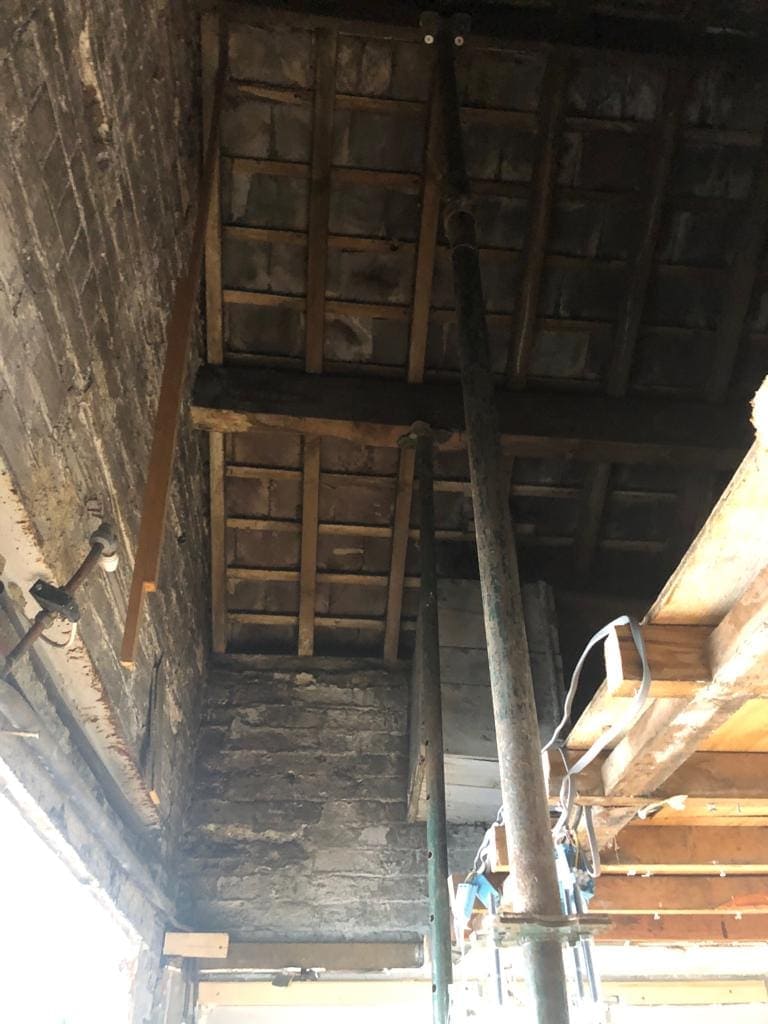 Extensive external rebuild of elevation, new windows, roof repairs and internal works which consisted of new men's toilet refurbishment, new joists, first floor repairs.