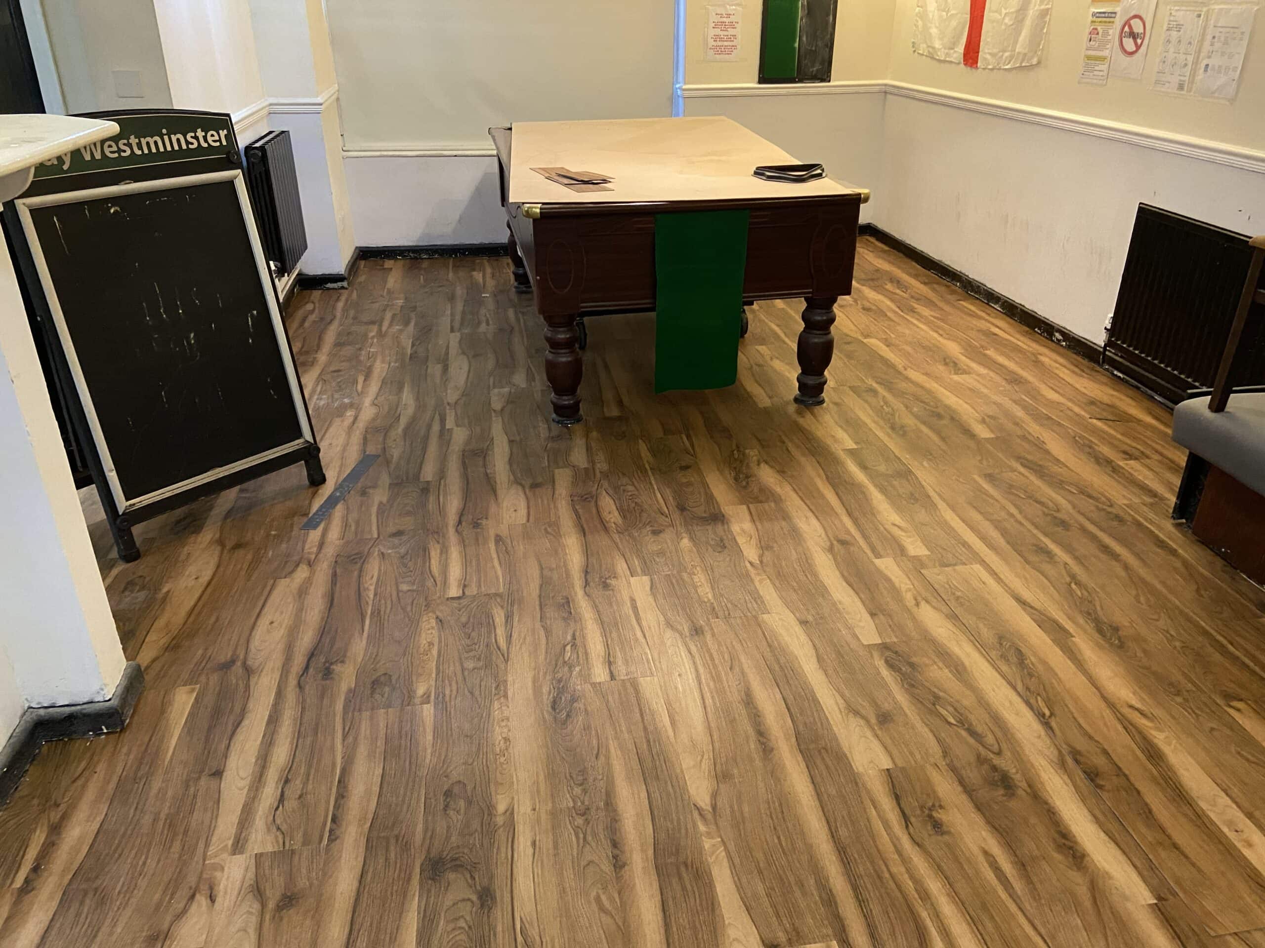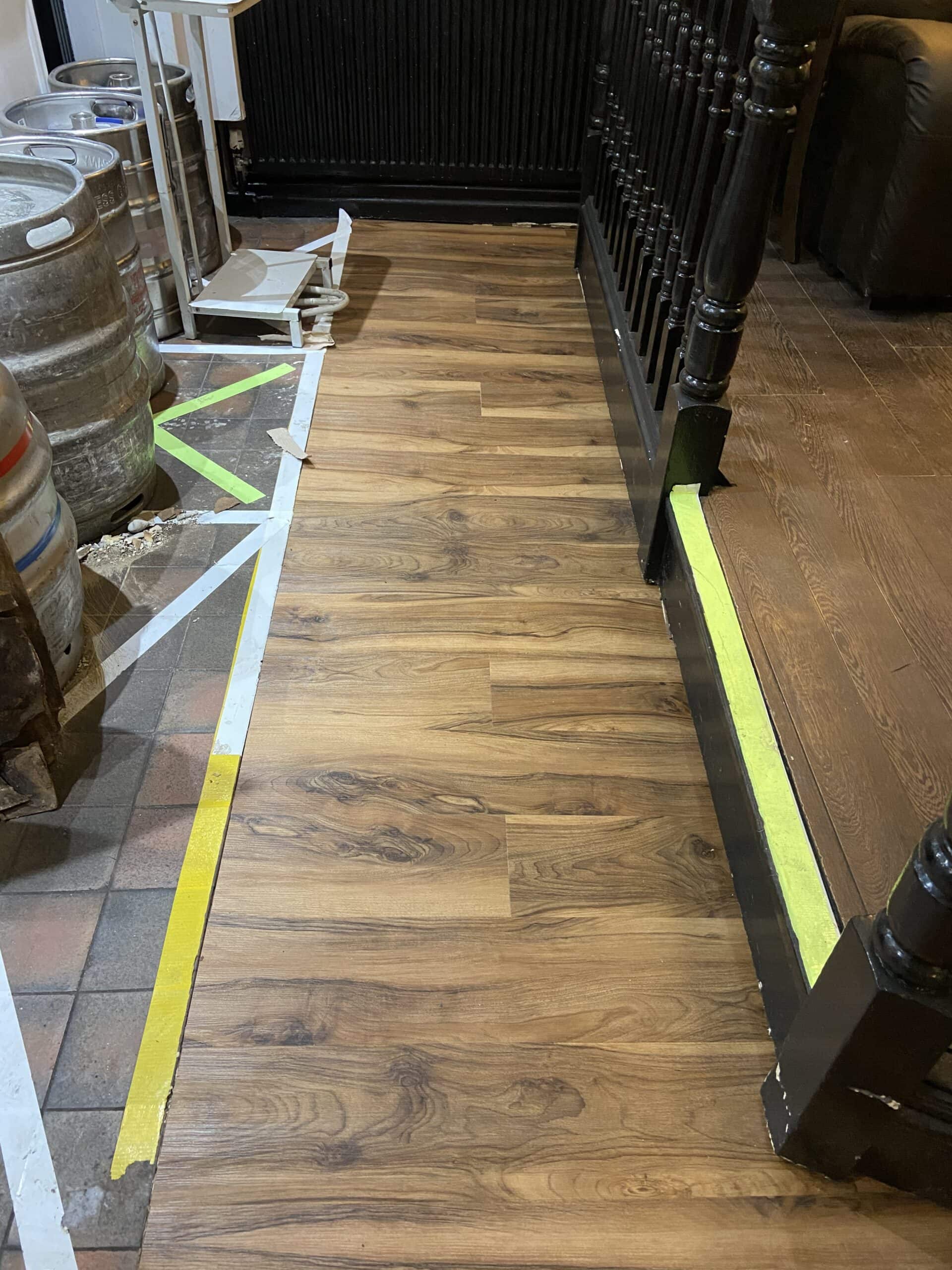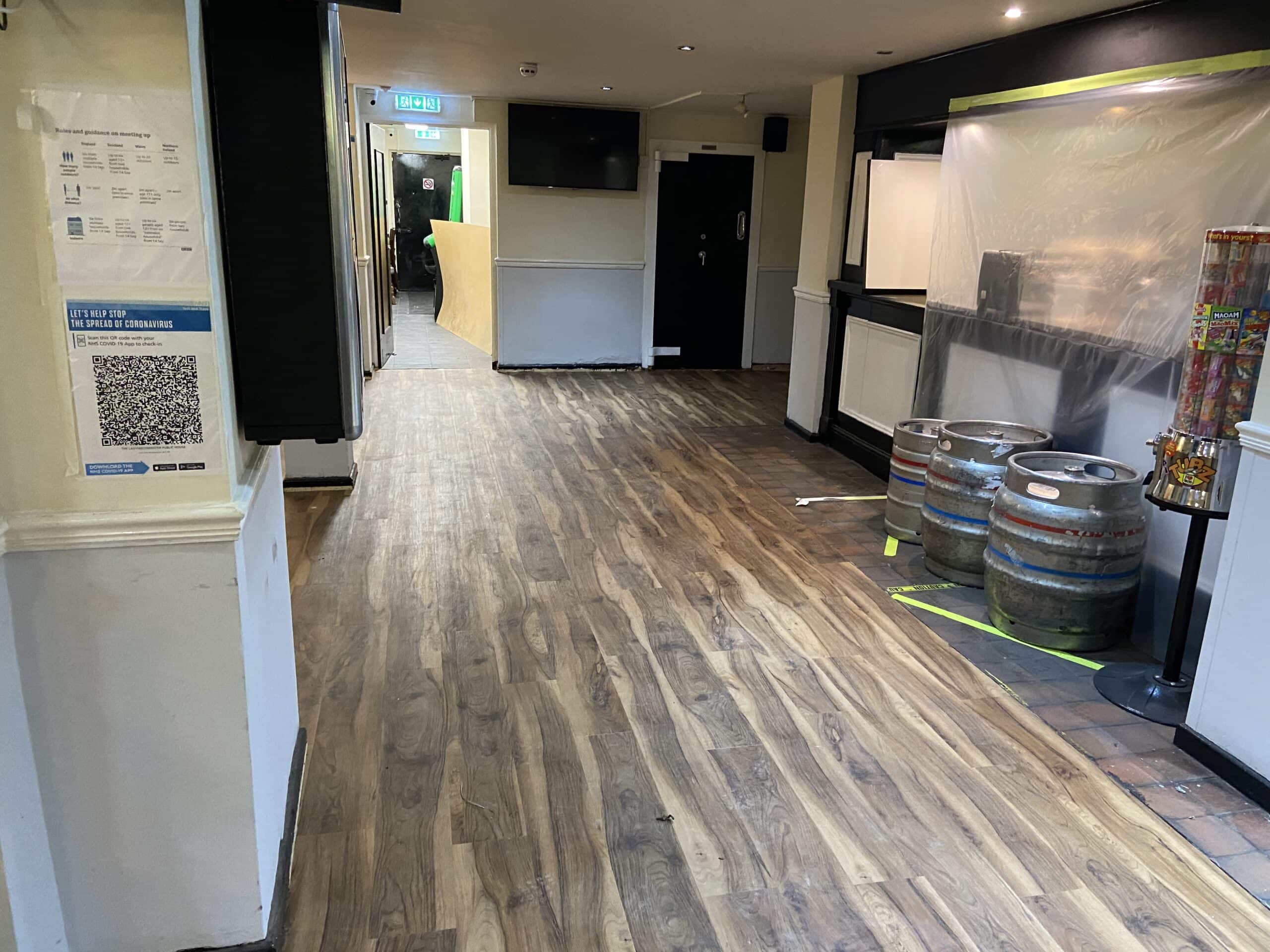 we removed the existing flooring throughout the pub, disposed and installed new Karndean flooring. The client was extremely happy with the works carried out.