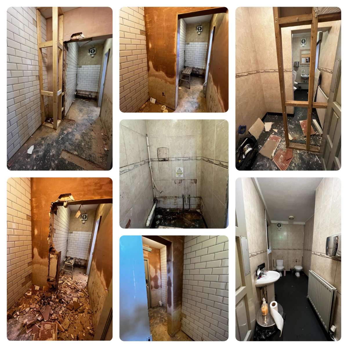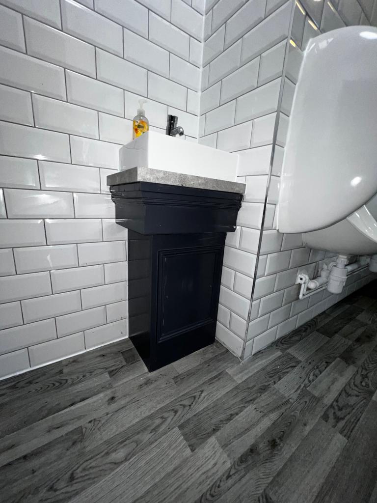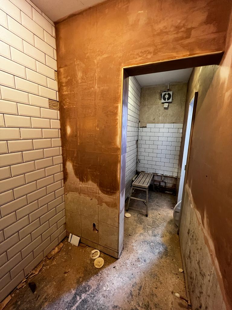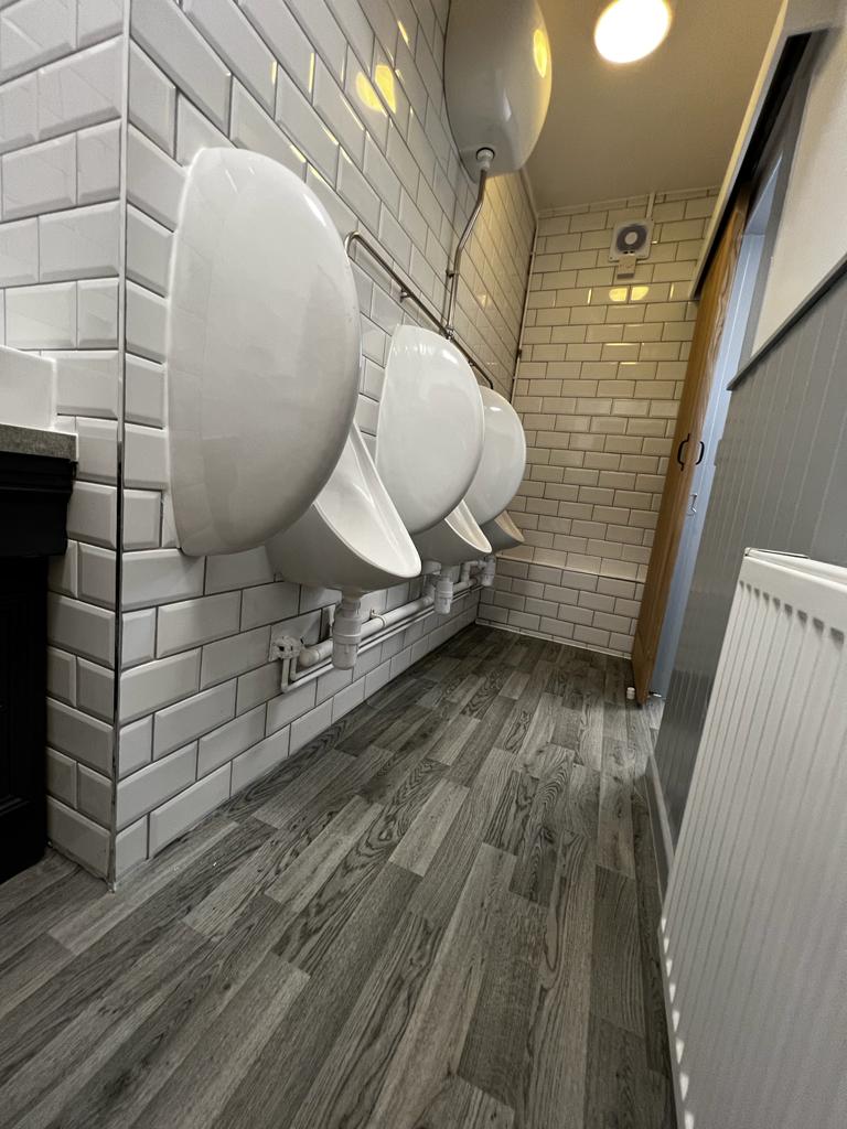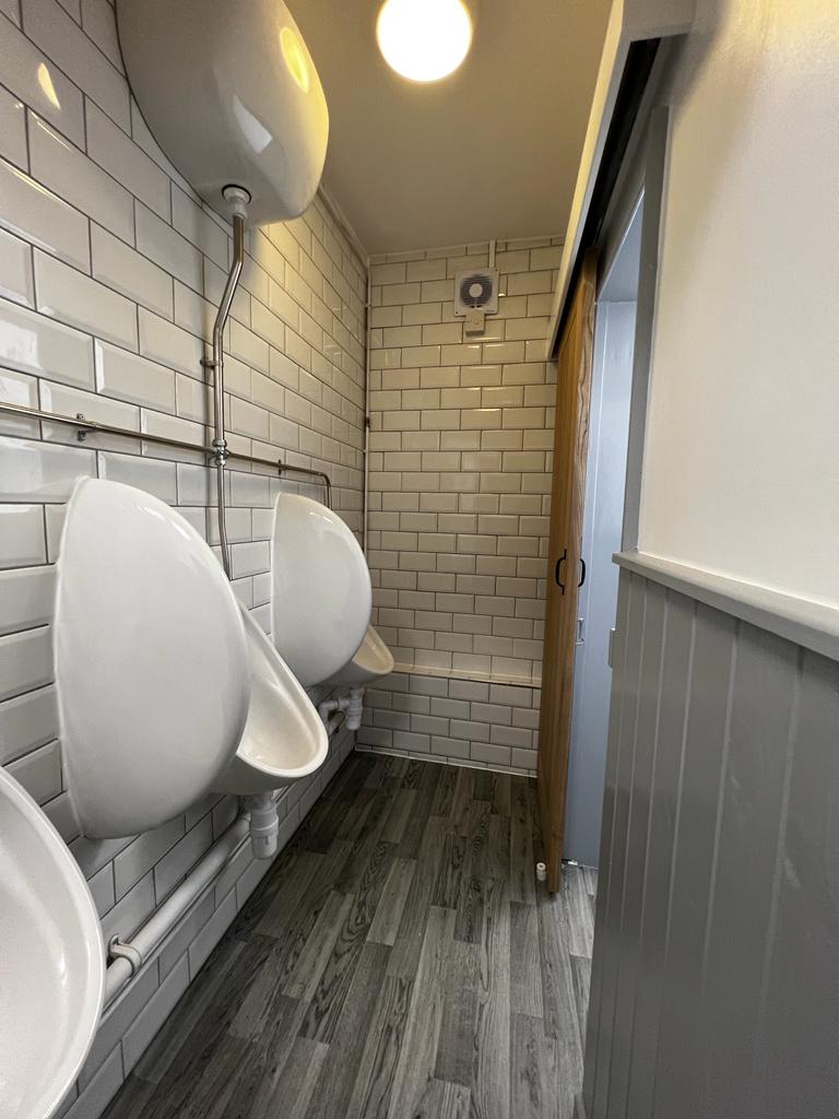 We ripped out the old public toilets, which included removing all fixtures, fittings and flooring. We then went back to brick and plastered, retiled, adjusted the pipework, installed new urinals and toilets, doors, and then decorated to match the client's needs.