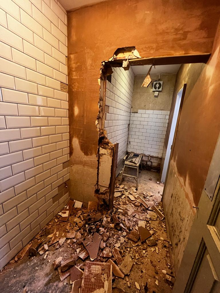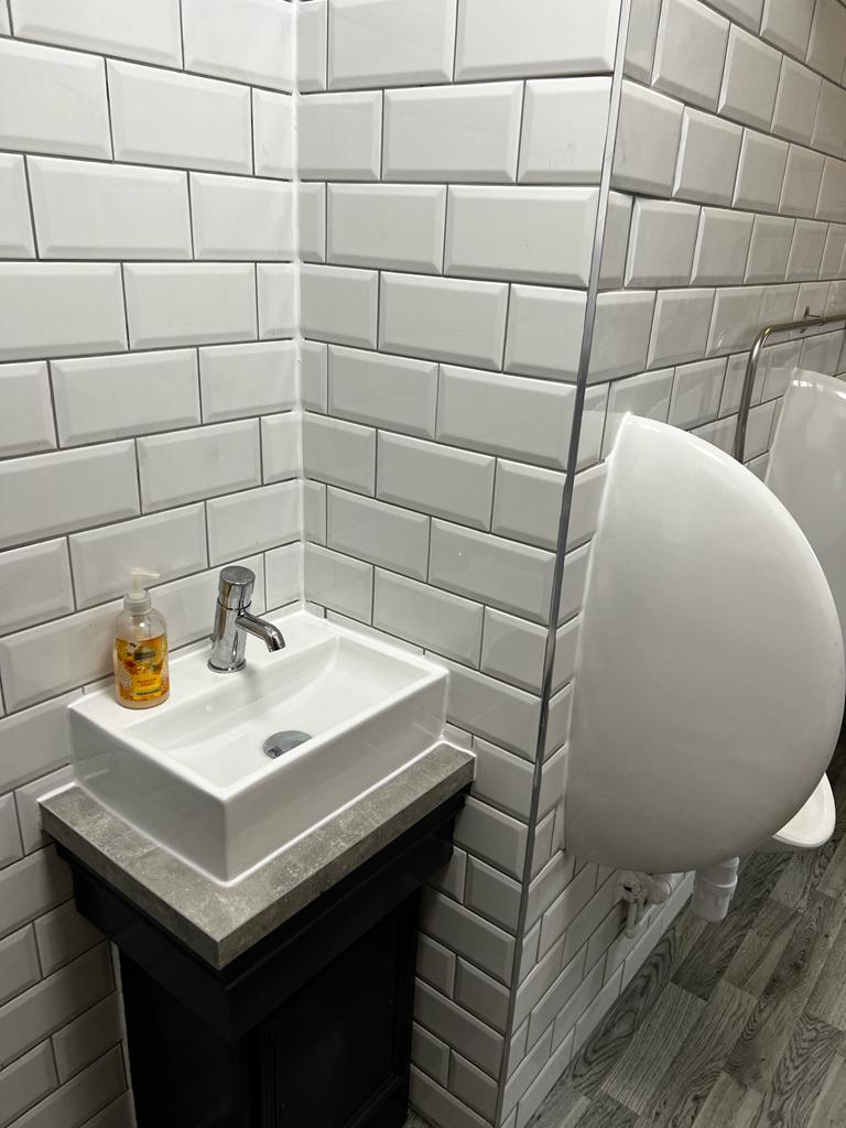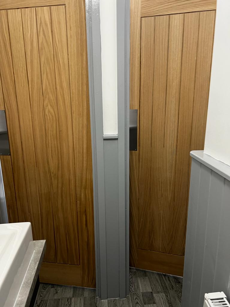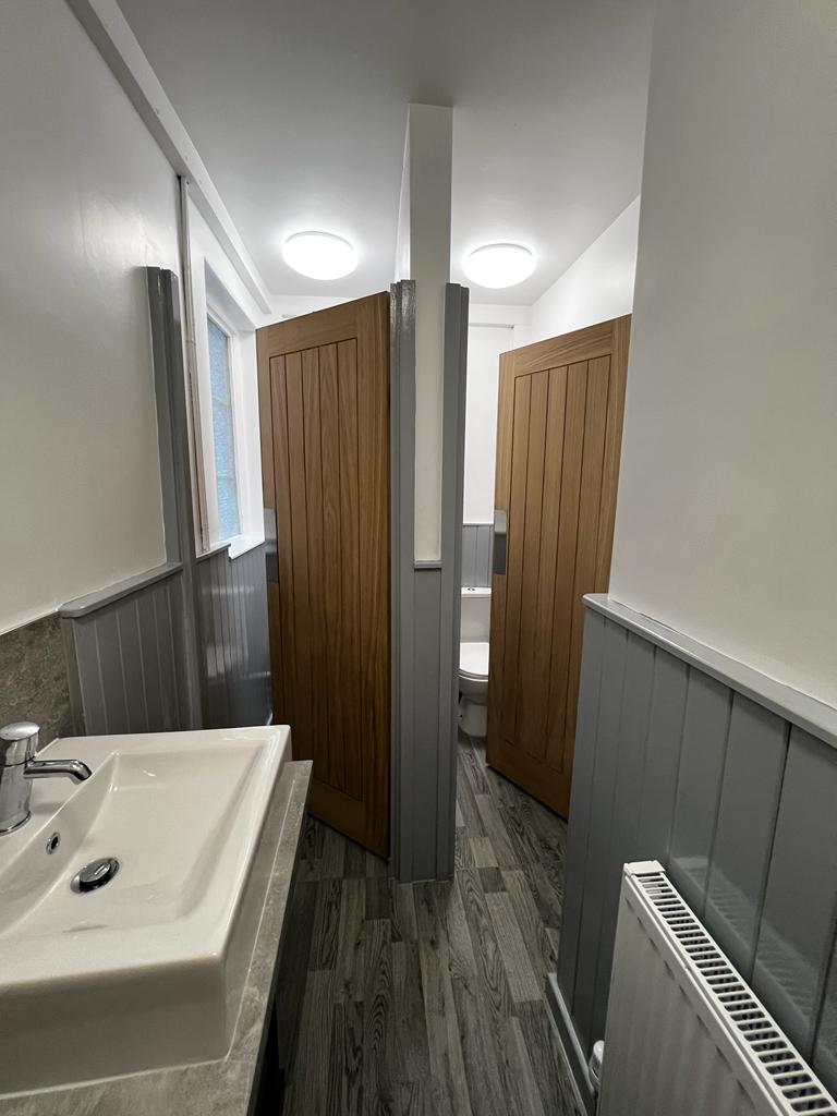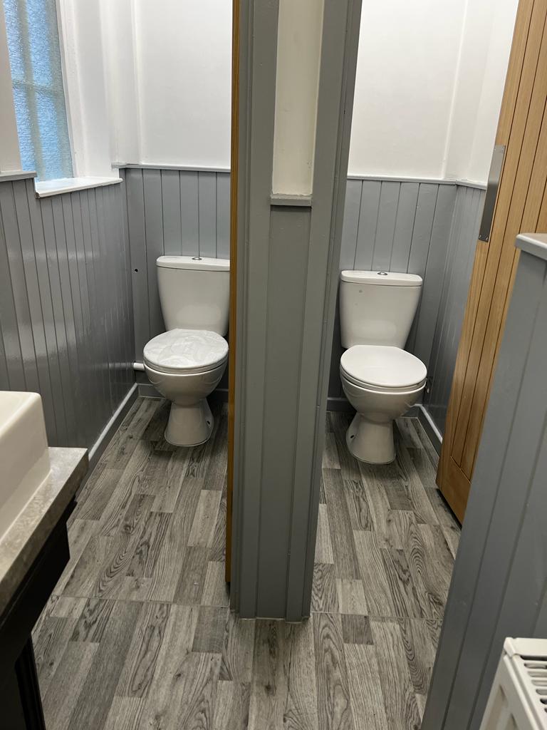 We ripped out the old public toilets, which included removing all fixtures, fittings and flooring. We then went back to brick and plastered, retiled, adjusted the pipework, installed new urinals and toilets, doors, and then decorated to match the client's needs.